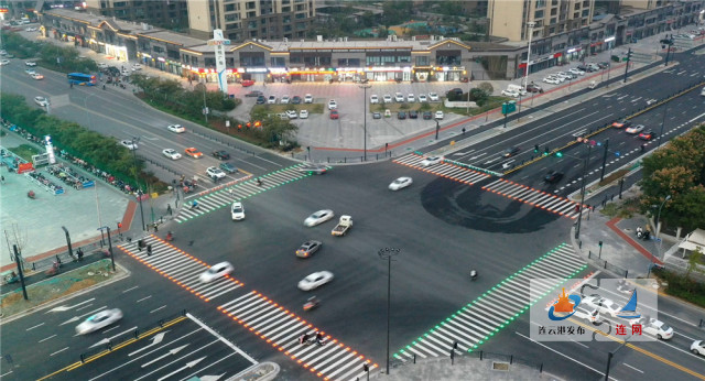 11月25日19点30分,初冬冷风略带寒意,但在赣榆区金海路,举目沿线路灯璀璨、智能电子站牌滚动发布提醒信息,尤其是与海城路交叉口的智慧斑马线,配合交通指示灯,有规律变换红绿颜色……