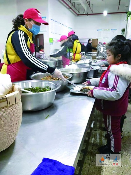 1月21日上午,记者来到了花果山大道边的连云港华杰实验学校。学校后勤部窦主任介绍,学校有约4600名学生,食堂一天三顿的打饭成了后勤人员最重要的工作之一。学校食堂一天要做的猪肉、牛肉、羊肉达900斤,鲜鱼1300斤,每天两层楼数十个打饭点,有64名专业打饭阿姨服务小学和初中的学生。
