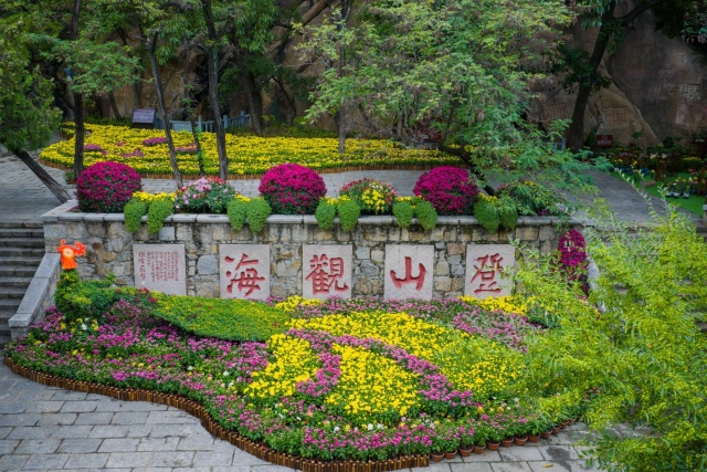诗意秋色从景区门口寓意深远的“子曰”菊艺造型,到龙洞广场振翅欲飞的“凤凰于飞”绿雕,孔望山景区内处处可见精心设计的菊艺景观。