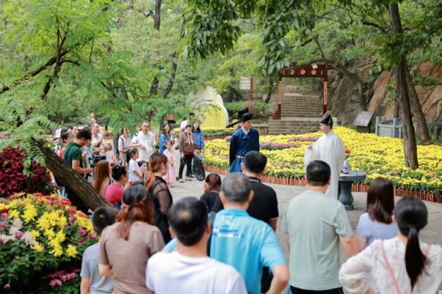 景区内,游客们或驻足欣赏各色菊花造型,或参与茶艺体验,或观看精彩演出,不时拿出手机记录美好瞬间。孩子们在游乐区欢快奔跑,清脆的笑声在山谷间回荡。本次黄花秋香游园会暨孔望山第二届菊花展将持续整个10月,通过深度挖掘地方历史文化,以花为媒,文旅融合,为游客提供一场全方位的秋日休闲文化体验。