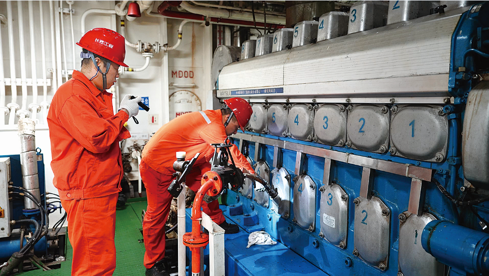 10月1日,在该工程1标段作业海域,“长鲸7”轮耙吸船正以“连轴转”的状态投入挖泥、吹填施工。船长配合连云港海事局工作人员逐项检查救生设备、消防系统,细致核对每一项安全参数;机舱内,船员们则对船舶机舱的各种机电设备进行仔细检查,保证机器设备的各参数在规定范围内,确保设备始终处于最优工况。
