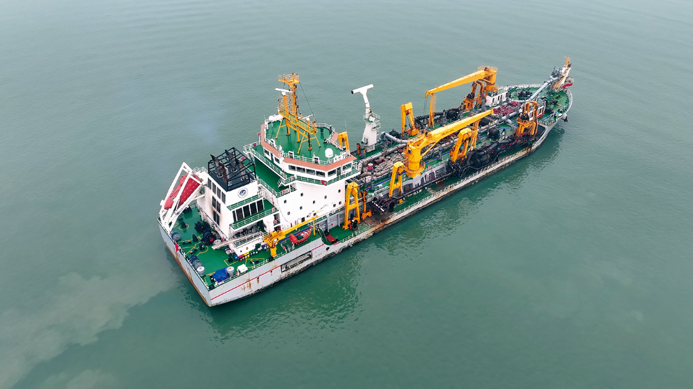 “这是我在船上过的第5个国庆节,为了保障工程序时进度,大家3班倒24小时不停歇工作。”“长鲸7”轮船长王彧介绍,全船共有30名船员坚守岗位,在假期保障施工安全高效,为1标段增深节点的如期完工打下坚实基础。