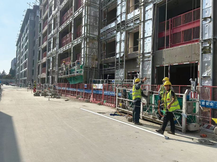 不远处的商业综合体外立面施工平台上,3名工人系着安全绳悬在半空,小心翼翼地安装玻璃幕墙。“现在天气不冷不热,正是赶工的好时候,我们每天能多装20多块玻璃。”施工人员刘秀峰嗓门洪亮,说话间还不忘转头提醒身旁同事,“把安全扣再检查一遍,安全第一。”