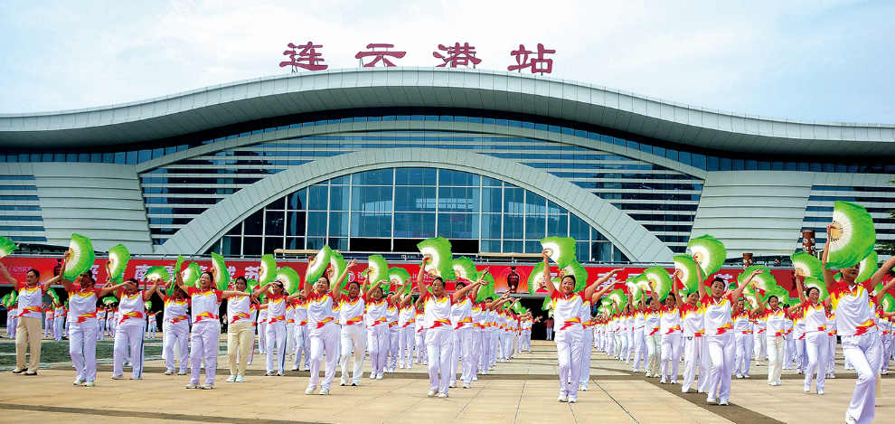 10月1日,连云港站站前广场举行千人广场舞表演,为祖国76岁华诞献上一份节日厚礼。记者 樊晓姝 通讯员 程秀佳 摄影报道
