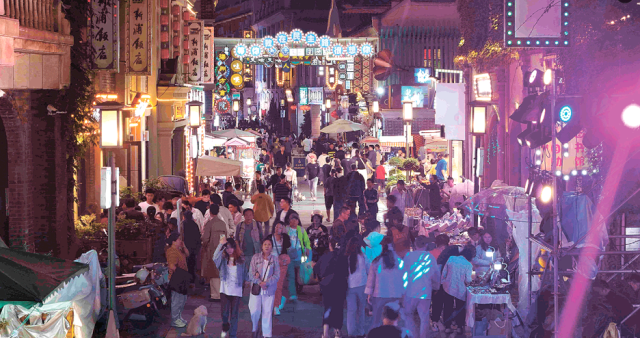 “20张金圆券一次!有没有更高的?”10月4日,在民主路老街的新浦广场上,非遗盒子灯的点灯权竞拍正在激烈进行。当市民以20张金圆券竞拍到当晚点灯资格,亲手点燃引线时,周围游客纷纷屏气凝神,举起手机记录。伴随着璀璨的烟花,多种造型的花灯先后从悬挂的“盒子”中掉落,流光溢彩,让市民领略到匠人的精巧技艺。不仅如此,游客可在互动区与NPC玩游戏赢取金圆券,还可使用金圆券兑换礼品、购买商品。此次活动带动临街商户消费显著增长,部分店铺在活动期间消费额提升300%。