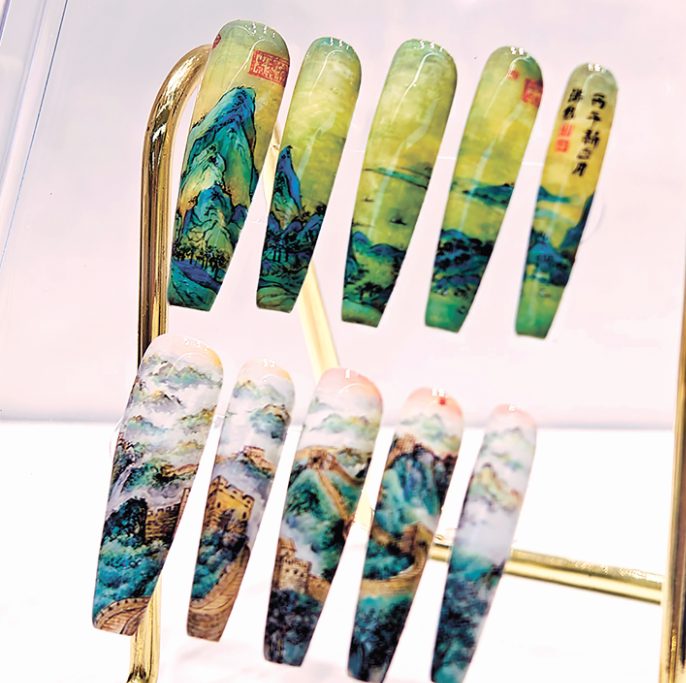 穿戴甲产业近年来发展也较为迅速。2019年,由一批水晶从业者转型开创的穿戴甲产业如今已形成年销1.5亿副、销售额80亿元的规模,全国市场占比超70%。走进东海的“穿戴甲一条街”,从5元一副的纯色甲,到上万元一副的精致婚甲,这里的产品满足了各种审美、各样需求的顾客。除此以外,更有一些大师将青花瓷、景泰蓝等传统工艺与现代美甲结合,让一副穿戴甲卖到50美元以上并销往全球。