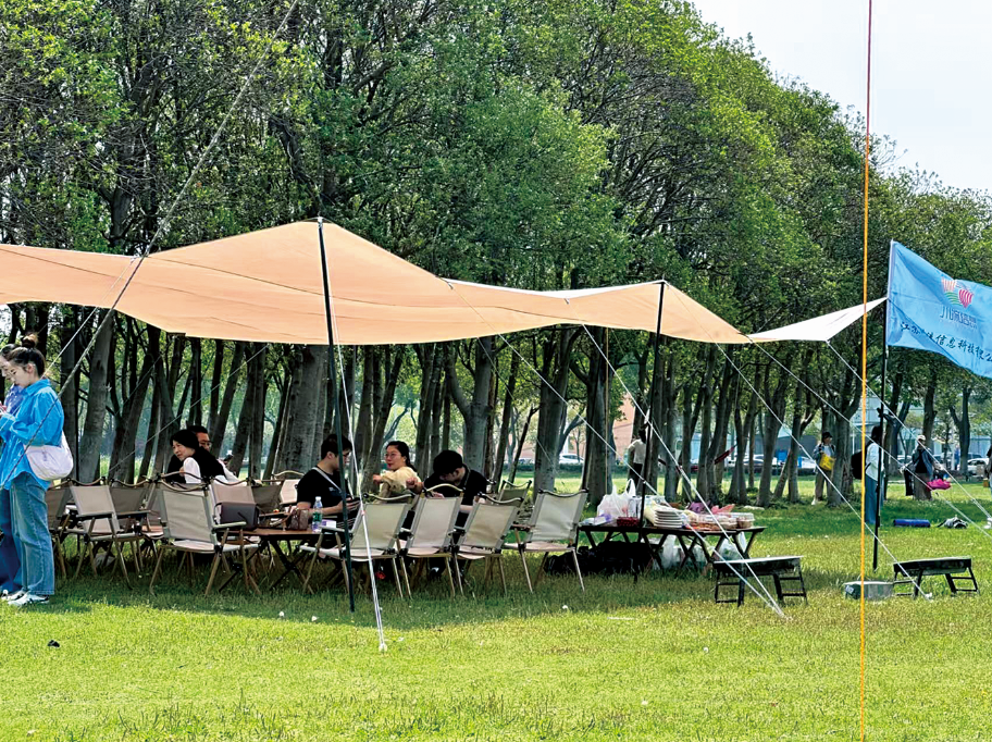 在白鹭公园,每到周末,草坪上就支起一顶顶帐篷。“平时工作太忙,周末就想找个安静的地方放松一下,搭帐篷不用走远,还能亲近自然,比去逛商场舒服多了。”带着家人来露营的李先生说,现在他身边很多朋友都爱上了露营、骑行等轻休闲活动,不为打卡炫耀,只为享受片刻的自由。