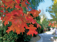 此外,在海州区振海路、盐河北路和新港城大道等城市道路,栾树红色的蒴果连成了一线;东盐河路、康泰路、朐园,以及花果山大道等路段,那晨落羽杉叶片变成了棕红色;在花果山下梅园外的樱花大道、海州樱花园等处,经霜的樱花叶片也在变成粉红色,散落不同公园绿地内的榉树、七叶树叶片均变成了橘红色,令人目不暇接。上述多彩的秋叶,均将陆续进入最佳观赏期。