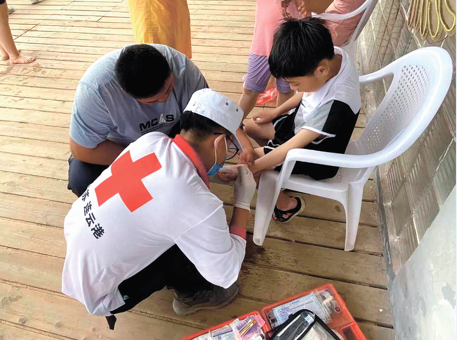 除了“正经”救援,他的助人还藏在生活细节里。2023年“五一”前,夜跑时的崔冀发现在海一方公园游客多了,路边垃圾也多了,既影响环境又有安全隐患。他联系红十字会,牵头成立连云区红十字救援队,队员多是爱心志愿者。到目前为止,该救援队共处理外伤30余次、帮助走失儿童3次、处理儿童意外晕厥1次。