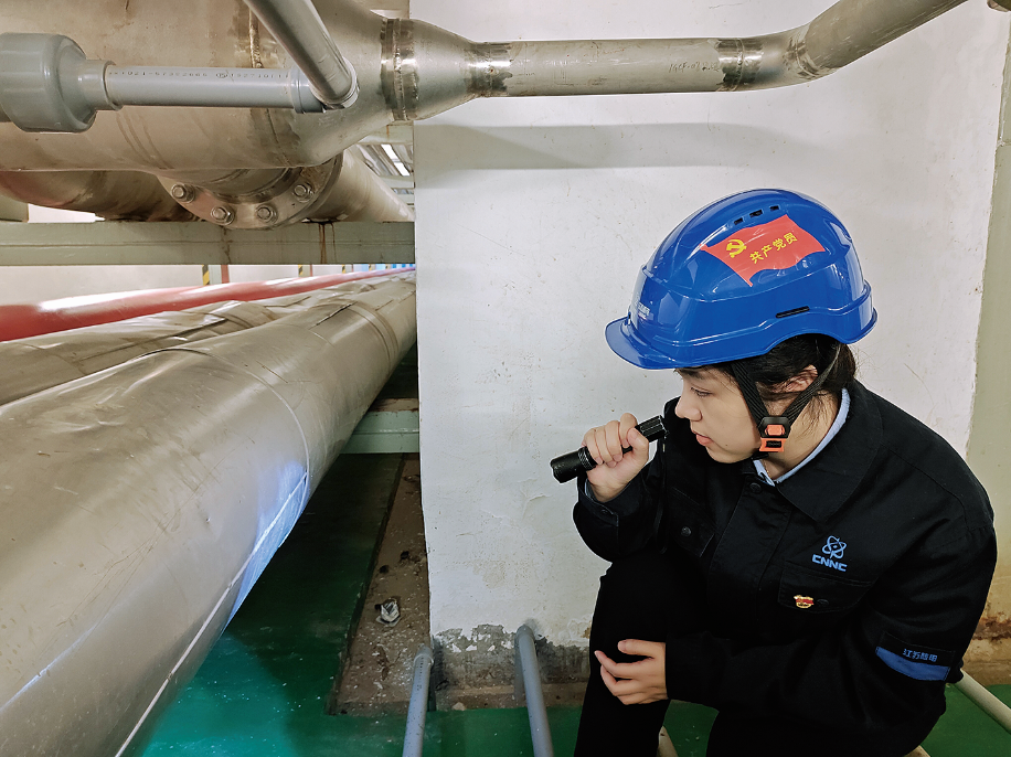 那时常规岛正处于调试期,现场成了她最好的课堂。“能亲眼看到管道怎么走,阀门在哪儿,系统怎么连接。图纸上的线条变成了眼前的钢铁脉络,那种感觉特别真实。”她说。每天背着图纸跑现场,在设备轰鸣声中辨认系统脉络,这些经历让她快速成长。