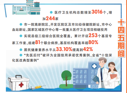 居民健康素养水平从33.10%提高到42%———这个关键指标的跃升,见证了连云港市居民健康水平的历史性跨越。“十四五”期间,我市以健康城市建设为抓手,全方位、全周期保障人民健康,交出了一份厚重的“幸福答卷”。