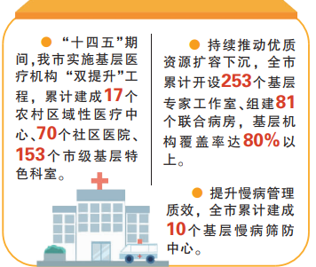 “党的二十大报告中提出‘把保障人民健康放在优先发展的战略位置’,我们就是沿着这个方向努力的。”花果山社区卫生服务中心主任王永结拿出一组数据:组建了由全科医生、护士、公卫医师组成的15支家庭医生团队,签约居民达2.58万人,其中慢病患者签约率97%。联合门诊增加到7个,8名市级医院专家固定坐诊,“现在居民基层就诊率从2020年的62%提升到了85%,让‘小病不出社区’成为现实。”