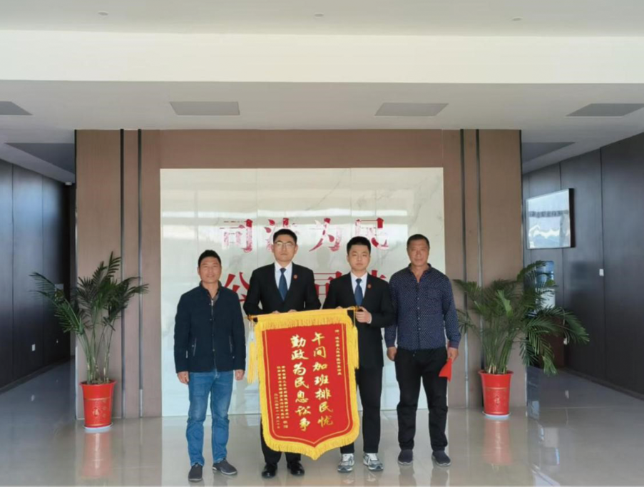 “真的是非常感谢法官,耽误你们中午休息了,我们堵在心头的心结终于解开了。”有一天中午,仲集法庭法官正在调解纠纷,忽然有人上门送锦旗。原来,就在前一日中午,法官成功调解了涉两起耕地合作经营协议产生的纠纷,双方当事人被法官一心为民的工作态度所感动,连夜制作锦旗对法官表示感谢。