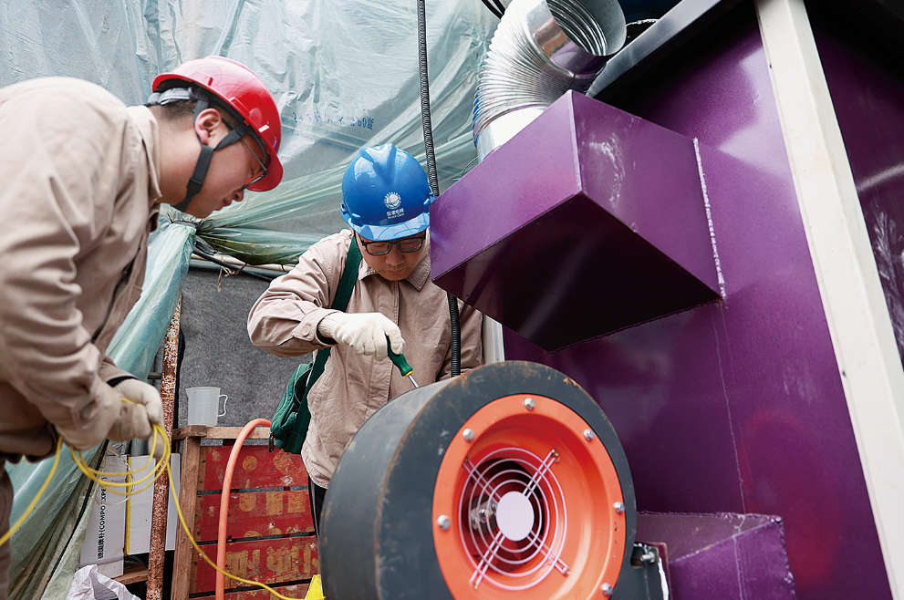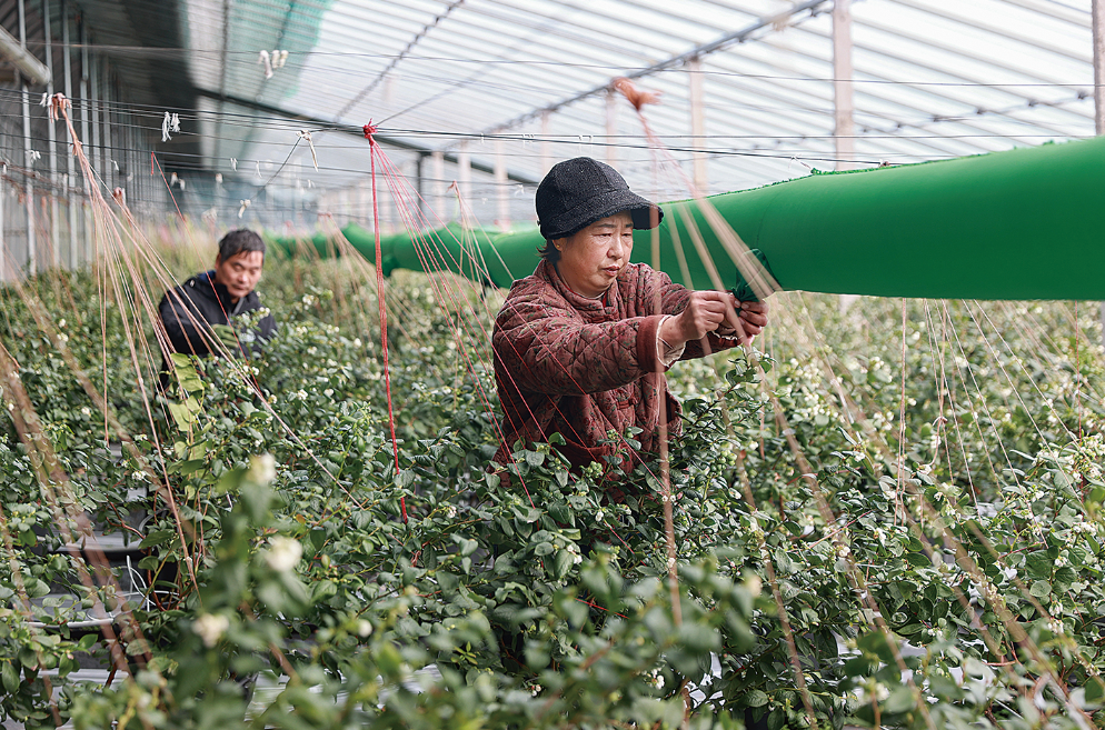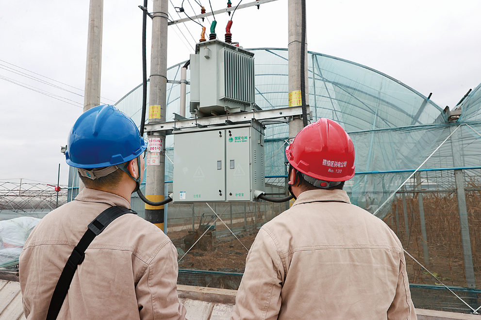 新一轮寒潮天气到来,全市各地积极做好防范措施。图为日前,赣榆区塔山镇倪林村蓝莓种植基地内,赣榆区供电公司工作人员对大棚内的温控设备、配电箱等用电设施进行排查。