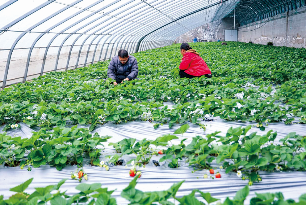 在云台农场云水湾生态种植基地,冬日的草莓大棚暖意融融,清甜果香扑面而来。翠绿植株间,一颗颗鲜红饱满的草莓如红宝石般点缀,头茬鲜果已正式开放采摘。今年基地种植了两大优质品种,有“草莓帝王”之称的“隋珠”,果实呈长圆锥形,色泽亮丽,甜度极高且带着浓郁蜂蜜香味,入口即化、汁水充盈;江苏本土选育的“盐莓1号”则果实硬度高,有效解决了草莓易损的运输痛点,深受市场青睐。