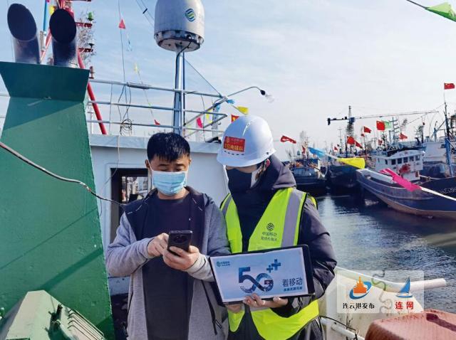 如今,赣榆海头近海区域已经实现了5G信号全覆盖,这就意味着渔民可以实现在近海渔船上,左手捕鱼,右手直播无缝对接。中国移动连云港公司相关负责人葛海东介绍,他们通过“海洋卫星宽带”,为渔民带来流畅的网络和语音通讯体验,还增加了支持海上生命固话、智慧云广播、移动传话筒、驾驶舱AI安全监管等功能的接入,保障了渔民捕鱼安全。