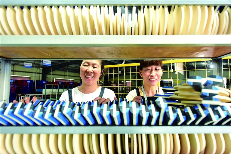 昨日,东海县安峰镇遛马村村民正在博赛体育用品有限公司组装乒乓球拍部件。近年来,东海县积极优化营商环境,把就业作为乡村振兴的抓手,用优惠政策吸引“人才回乡、资金回流”,拓宽村民增收致富门路,助力乡村振兴。 (记者 樊晓姝 通讯员 张正友 李伟 摄影报道)