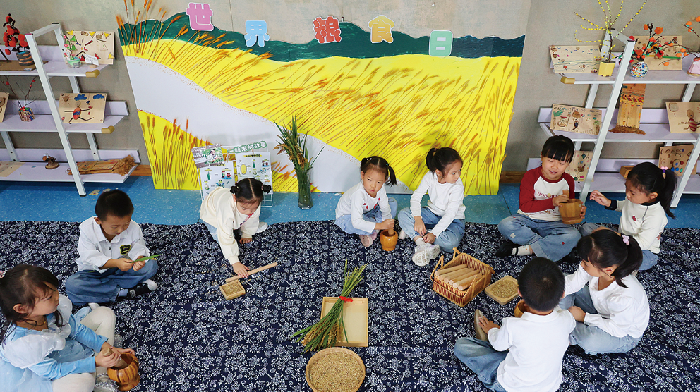 昨日,连云区云山幼教集团映象山海分园组织开展“爱惜粮食 从小做起”主题活动,小朋友们在老师指导下辨识各种粮食作物, 从小培养爱惜粮食、节约粮食意识。
