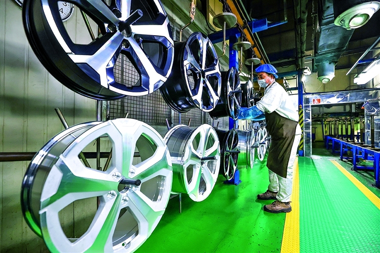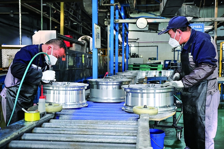 近日,市开发区启创铝制品制造企业车间内,工人正在汽车轮毂生产线上忙碌。连日来,市开发区各企业铆足干劲忙生产,开足马力赶订单,全力冲刺年度目标任务。(记者王健民 通讯员 高屹 摄影报道)