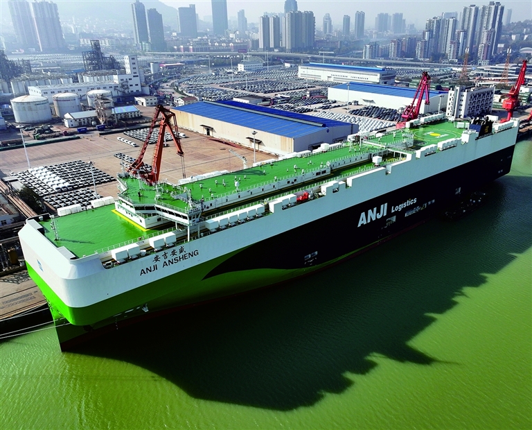 11月24日,利比里亚籍滚装船靠泊连云港港口装载6874辆国产汽车,标志着连云港口岸单船汽车出口再创历史新高。连云港边检站实行“船到即检、车到即放”的通关模式,优化查验流程,确保出口车辆通关零等待、零延误。据统计,今年前10个月,连云港口岸汽车出口突破30万台,其中新能源汽车超过4万台,同比增长47%。( 记者 王健民 通讯员 王超 王帅奇 摄影报道)