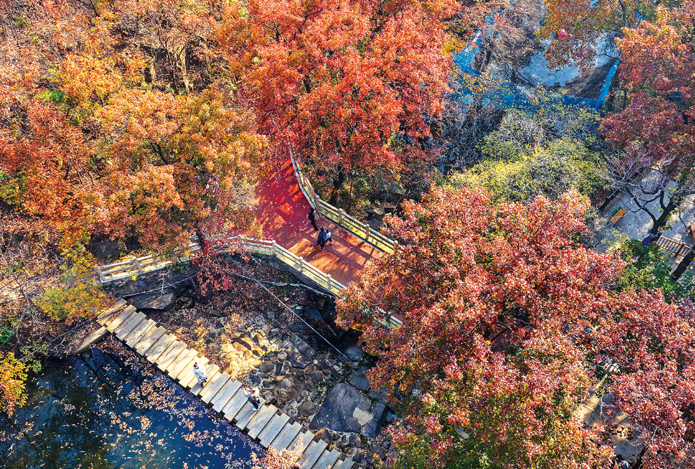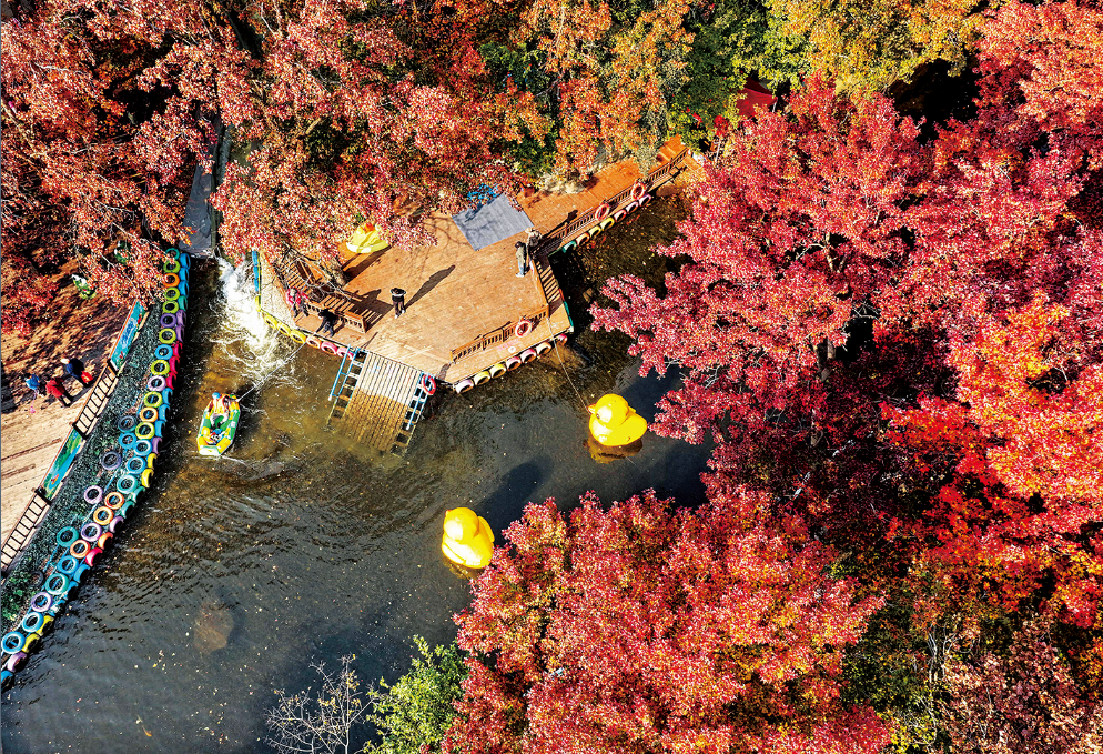 11月22日,游客在枫树湾景区观赏美景。初冬时节,我市云台山脉色彩斑斓,吸引很多市民和游客登山打卡,领略初冬的绚丽风景。记者 王健民 通讯员 李灵通 摄影报道