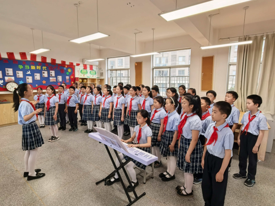 活动现场,孩子们用纯真嗓音传递对祖国的深情。音乐成为情感的纽带,将抽象的爱国情怀转化为可感可知的旋律与歌声,激发学生情感共鸣。