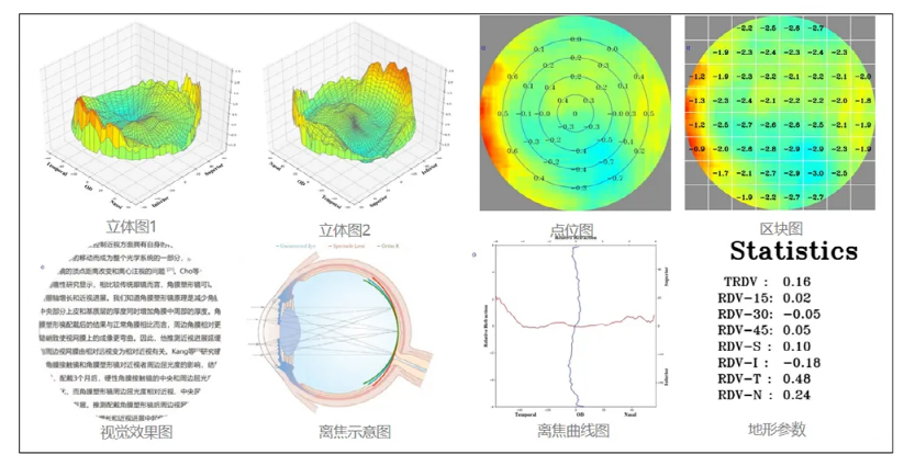 基于MRT精准检测结果,推动角膜塑形镜(OK镜)验配实现从“普通”到“精准”的跨越。传统角膜塑形镜(OK镜)验配主要依赖角膜地形图,虽能通过塑造中央角膜形态保障日间清晰视力,但缺乏对个体周边离焦状态的精准把控。借助MRT技术,可在验配前精准评估全眼离焦状态,快速比较角膜塑形镜试戴后所形成的视网膜光学区与黄斑区的吻合度,进而指导镜片的选择与定制,让OK镜更能针对性地优化周边视网膜成像质量,实现“矫正”与“控制”的双重效果,大幅提升近视防控的成功率与安全性。