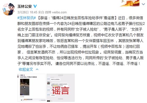 视频中究竟发生了什么?该视频其实发生在广西玉林市绵辖区,视频中的场景与绑架、性侵等情节无关。对此,广西玉林市公安局“@玉林公安”日前发布了详细情况通报:经过网警核查,视频中红衣女子吉某和几个朋友到某朋友家吃晚饭,饭后吉某和另一个女伴要搭车回玉林,其朋友张某等人见她喝醉了怕出事,不让她俩自己搭车,提出开车送她们回家,但吉某发酒疯不愿,所以出现视频中的拉扯现象。经警方调查,当晚双方当事人之间没有存在抢劫、性侵等违法行为,网上所传的“女子被抢劫、男子是人贩子”等情况与事实不符。