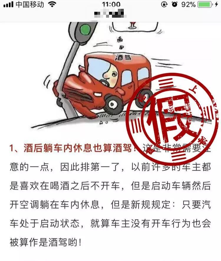 一条“2018新交规出炉严查酒驾”的网帖在朋友圈中刷屏,网帖提醒:按照新规,只要汽车处于启动状态,司机饮酒后就算只是躺车内休息也算酒驾。