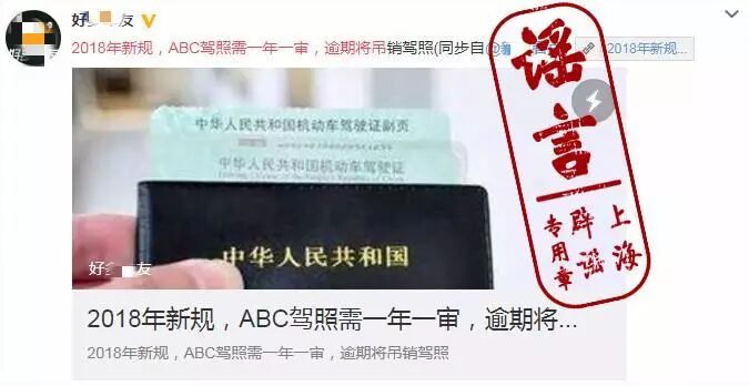 有网传文章称2018年出了新的驾驶证照规定,“ABC驾照需一年一审,逾期将被吊销”。文章还称,要是逾期审验,驾驶证就会被注销。