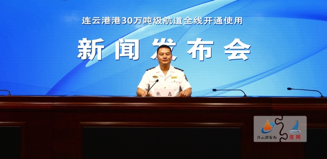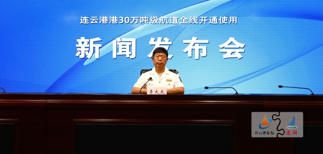 参加发布会的有:连云港海事局副局长、新闻发言人包继来同志,连云港港30万吨级航道建设指挥部常务副指挥蔡辉同志,连云港海事局通航管理处处长张磊同志,连云港海事局四级高级主办李大友同志。