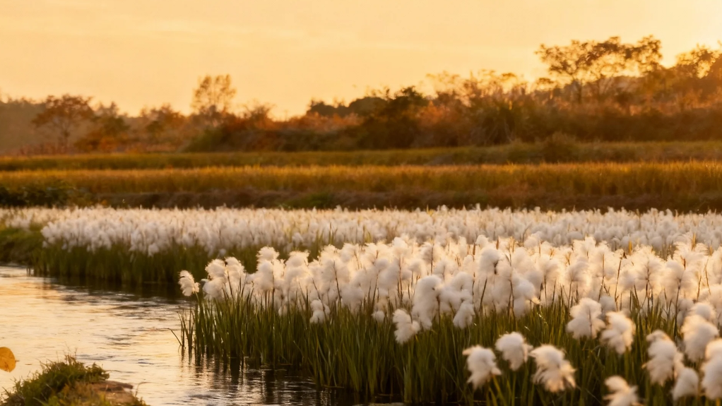 凉爽的秋风在稻田里掀起一波一波的金浪,老庄在埝埂上观察自己栽种的水稻长势,不经意间望见旁边的小河里,生长着丛丛棉蒲。要是在过去,棉蒲早就被村里闲不住的人起早带晚割走了,这可是做蒲编的好材料。如今,村里青壮年劳力都去城里打工了,谁还稀罕这棉蒲,寂寞的棉蒲遂无人问津。