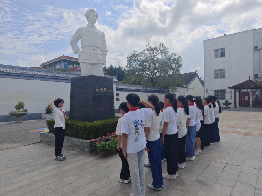活动现场庄严肃穆,少先队员们整齐列队,面向烈士塑像肃立。在辅导员老师的带领下,队员们重温了苏光烈士英勇不屈的光辉事迹,深刻感受到革命先辈坚定的理想信念和崇高的爱国情怀。
