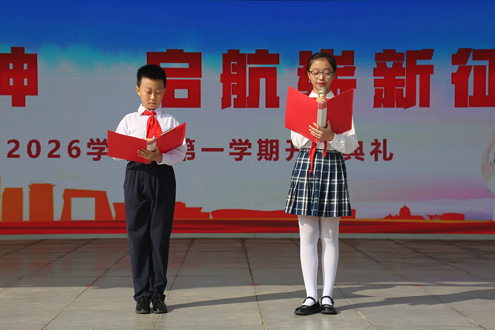 操场上,全体师生整齐列队,同学们身着统一校服,脸上洋溢着新学期的憧憬。开学典礼在庄严肃穆的升旗仪式中拉开大幕。当激昂的《义勇军进行曲》奏响,升旗手奋力扬起手臂,鲜艳的五星红旗冉冉升起,全体师生怀着崇高敬意,向国旗行注目礼。这一刻,爱国情怀在每个人心中澎湃,同时也为新学期注入了强劲的奋进动力。