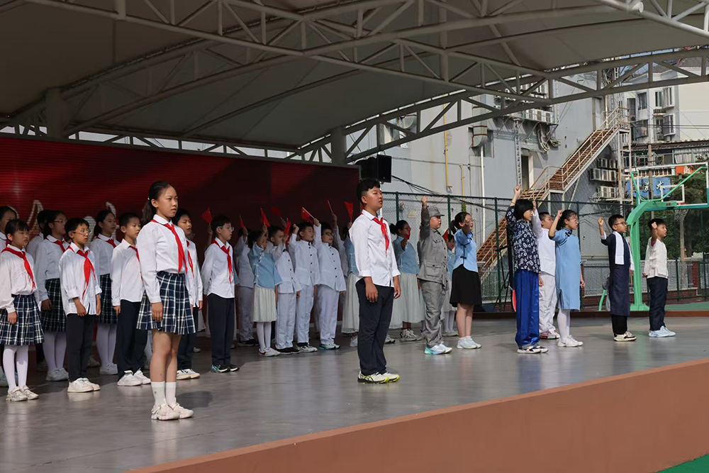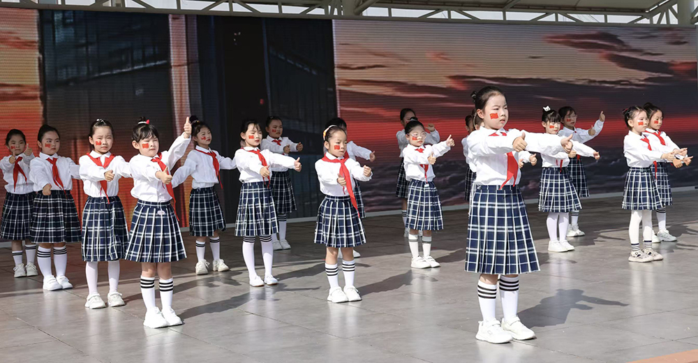 少先队员们也用自己的方式来迎接这场盛大的仪式。红领巾迎风飘扬,点滴梦想闪闪发光,舞蹈《红领巾有梦想》活力满满,引领我们用满腔的热血书写未来的序章。烽火岁月虽已远去,但英雄的故事却从未褪色,朗诵《穿越时空的对话》带领我们一同走进那段波澜壮阔的历史,聆听穿越时空的英雄赞歌。