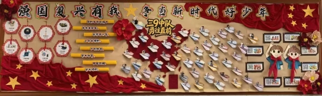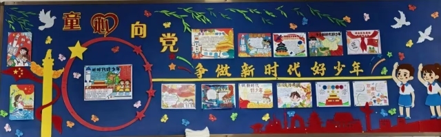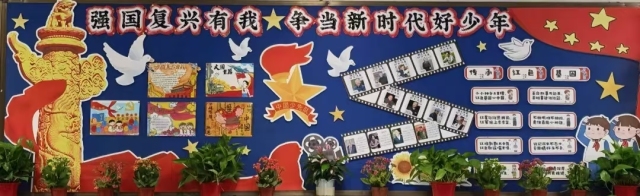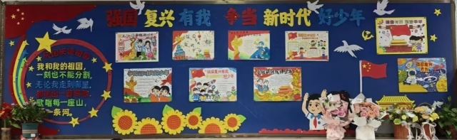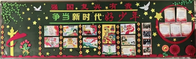 各班级围绕主题精心构思,将爱国情怀与青春理想凝聚于方寸板报之间:或以刚劲书法书写“强国有我”的铮铮誓言,或以灵动绘画勾勒新时代少年的蓬勃风采,或以鲜明色彩描绘对祖国未来的美好祝愿。作品主题鲜明、布局精巧、色彩和谐,既凝聚了集体智慧,又展现出艺术美感,成为校园中一道亮丽的风景。