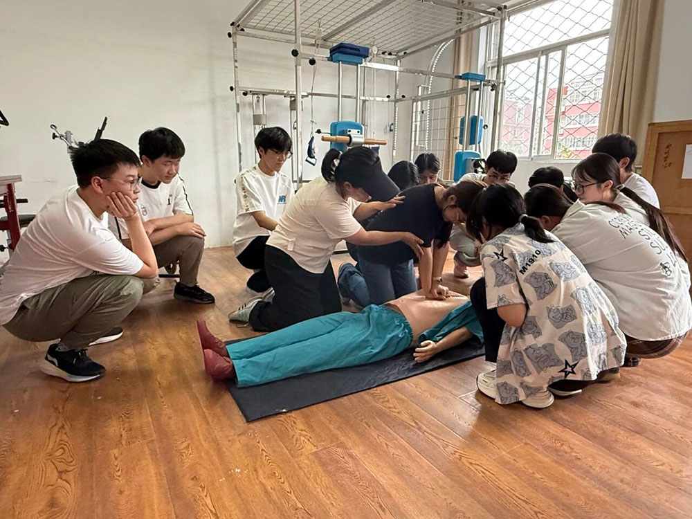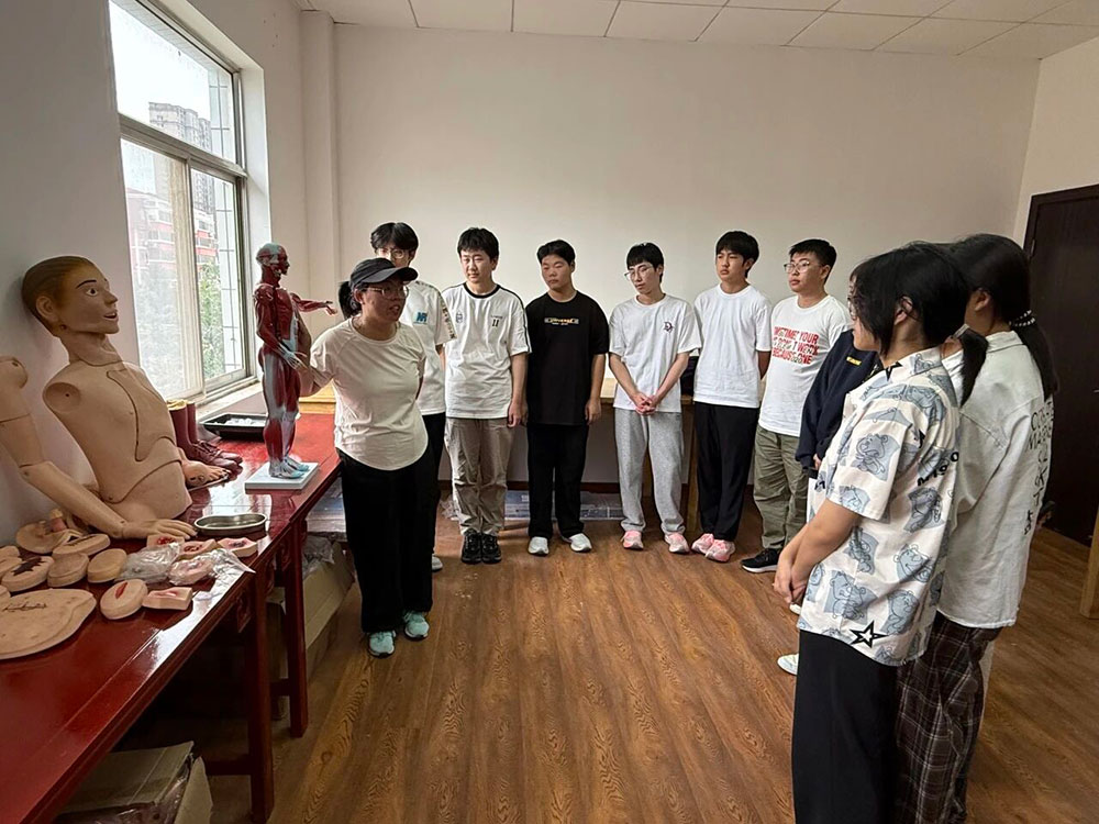 一走进这个区域,就能看到专业的医疗设备和康复器械。病床、康复训练架等一应俱全,还有人体骨骼模型等教具。在这里,何老师讲解了常见伤病的应急处理,比如骨折的固定、伤口的包扎等。此外,同学们也了解康复训练的基本方法,对于一些需要后续康复的伤病情况,知道如何进行初步的康复指导。