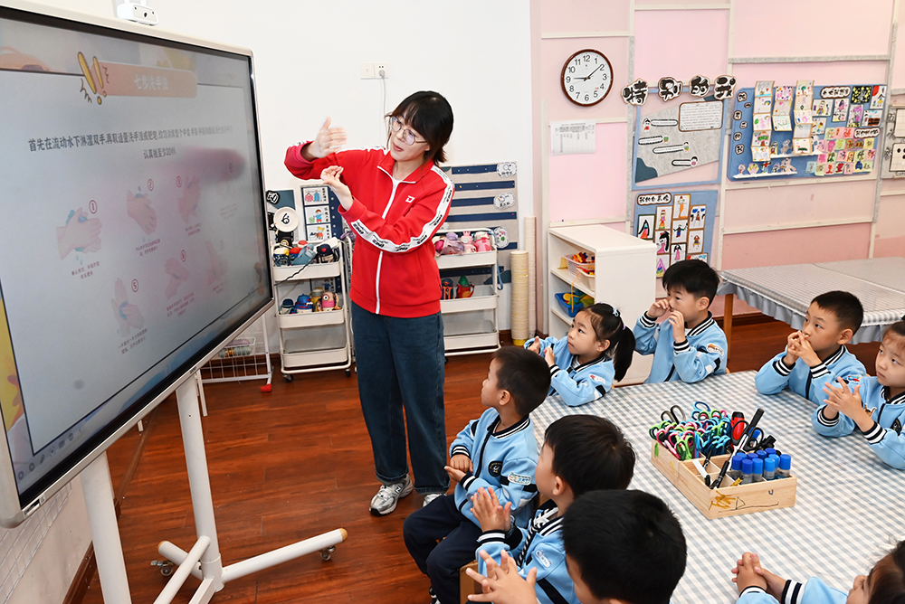 “七步洗手歌”将整个活动推向了高潮。伴随着朗朗上口的儿歌旋律,孩子们在老师的带领下,兴致勃勃地学习“内、外、夹、弓、大、立、腕”的正确洗手步骤。他们一边大声跟唱,一边认真地搓搓手心、揉揉手背、清洁指尖,每一个步骤都做得有模有样。此外,幼儿园还设置了“我是洗手小卫士”的实践环节,鼓励孩子们在餐前便后主动洗手,并对表现优秀的孩子给予了表扬,极大地激发了他们的参与热情。此次世界洗手日活动,不仅让孩子们在寓教于乐中掌握了正确的洗手方法,更将“预防疾病从手开始”的健康种子深植于他们心中。