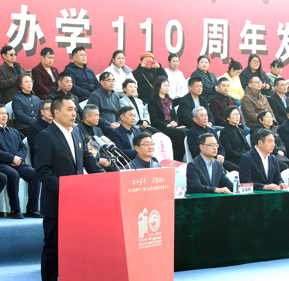 市教育局局长、党组书记、市委教育工委书记王修杰在讲话中指出,二附小的110年,是一部“守初心、传文脉、勇创新”的育人史诗——从1915年“尚义学堂”起步,历经刘百川“聪敏活泼、勇敢快乐”的育人期许,朱智贤儿童心理理论的实践深耕,到如今“全国文明校园”的荣光,学校始终站在教育改革前沿,其“童心课堂”“课程融通”等成果,为港城基础教育提供了“二附小方案”。