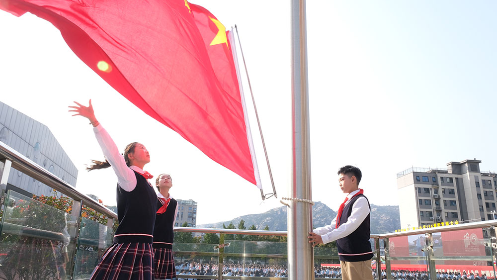 《薪火永续》篇章迎来高潮:一名学生诵读《写给未来的我》,将对母校的眷恋与未来的期许装入信封,由无人机带向远方;全场师生抛出五彩纸飞机,五彩气球同步升空;全体起立齐声共唱《歌唱祖国》,歌声在校园上空回荡,传递着“薪火永续”的坚定信念。