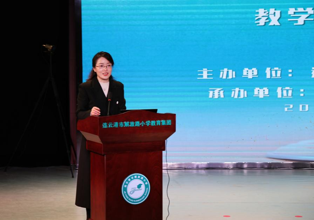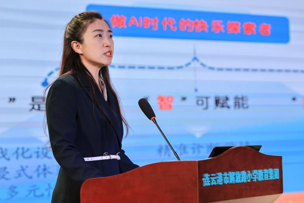 连云港市教育局教研室副主任马建明在致辞中充分肯定了解放路小学的教改探索。他指出,学校历经二十余年持续深耕,完成了从“整合教学”到“项目导学”再到“乐智慧融”的阶梯式发展,在推动教学方式转型与人工智能融合方面取得了显著成效。期待学校继续发挥示范作用,为推进区域教育创新贡献智慧力量。