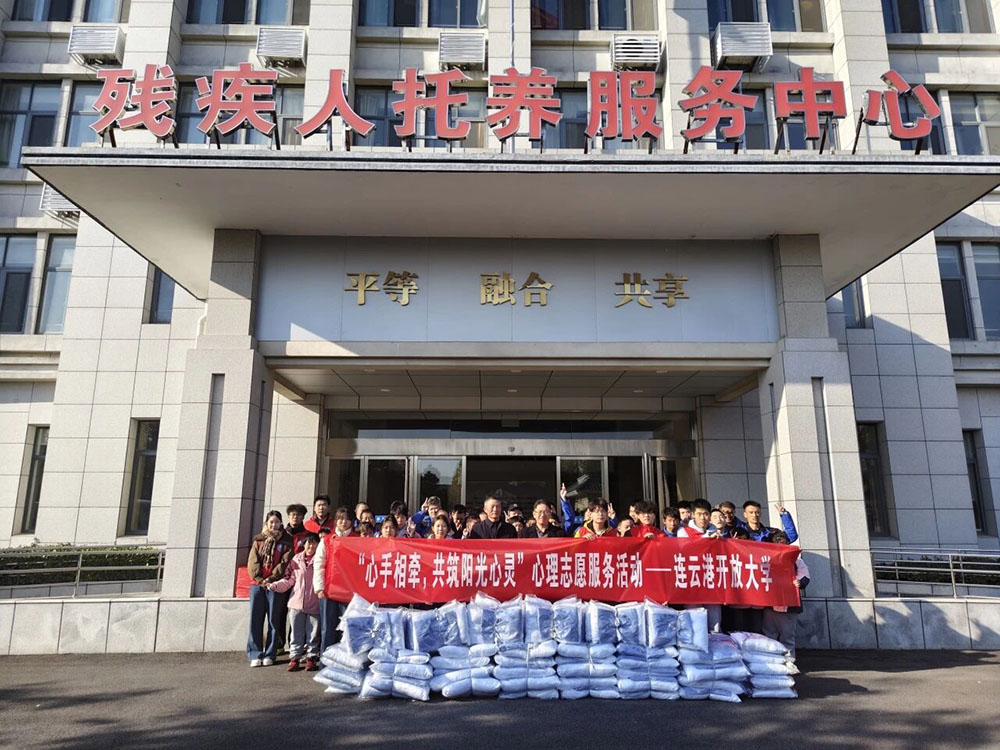 11月19日下午,学校携手连云港市残疾人托养服务中心,成功举办“心手相牵,共筑阳光心灵”心理志愿服务活动。连云港市残疾人托养服务中心主任徐毓兵、学校学工处处长徐以标、心理专职教师薛旭旭和赵文倩、学生心理志愿者与托养中心残疾人学员及工作人员参加活动,以爱心捐赠与趣味互动为纽带,传递温暖与关怀。