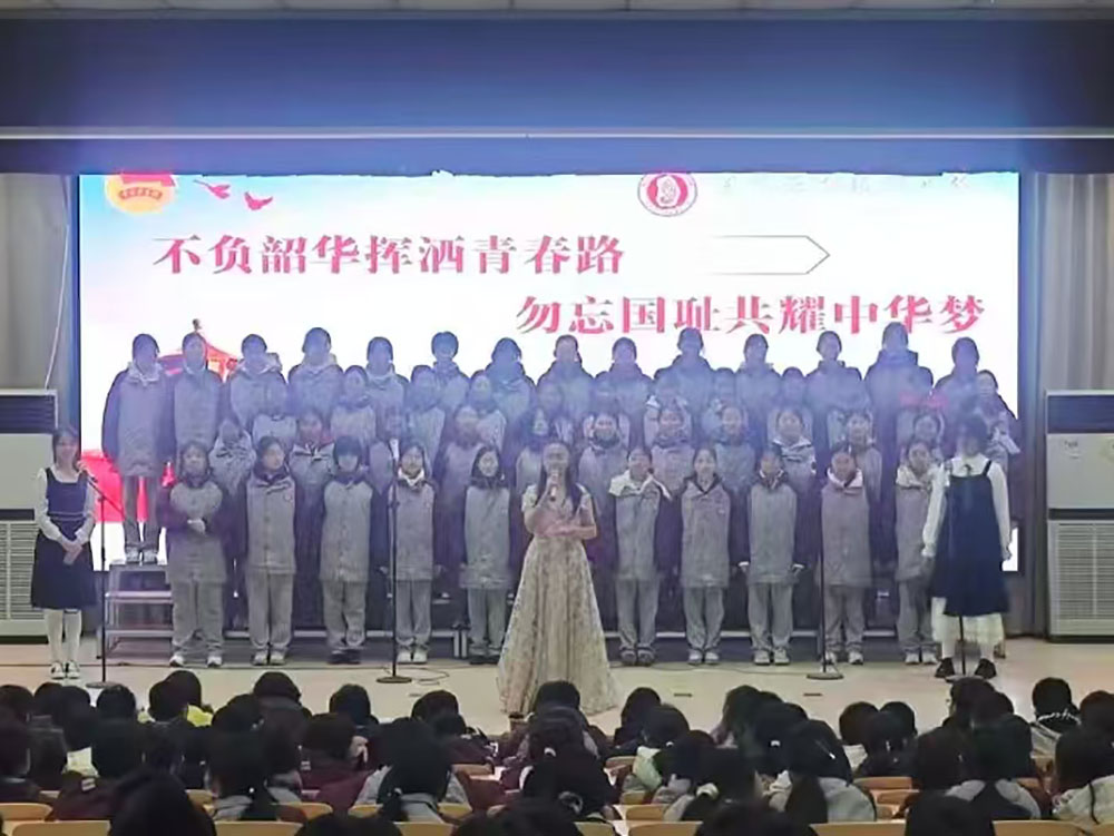 活动伊始,李妮校长深情回顾了一二·九运动的历史背景和伟大意义,强调当代青少年要铭记历史、珍惜当下、勇担使命。校长勉励同学们要将爱国情怀融入日常学习生活,以实际行动践行“天下兴亡,匹夫有责”的担当精神,争做新时代的有为青年。