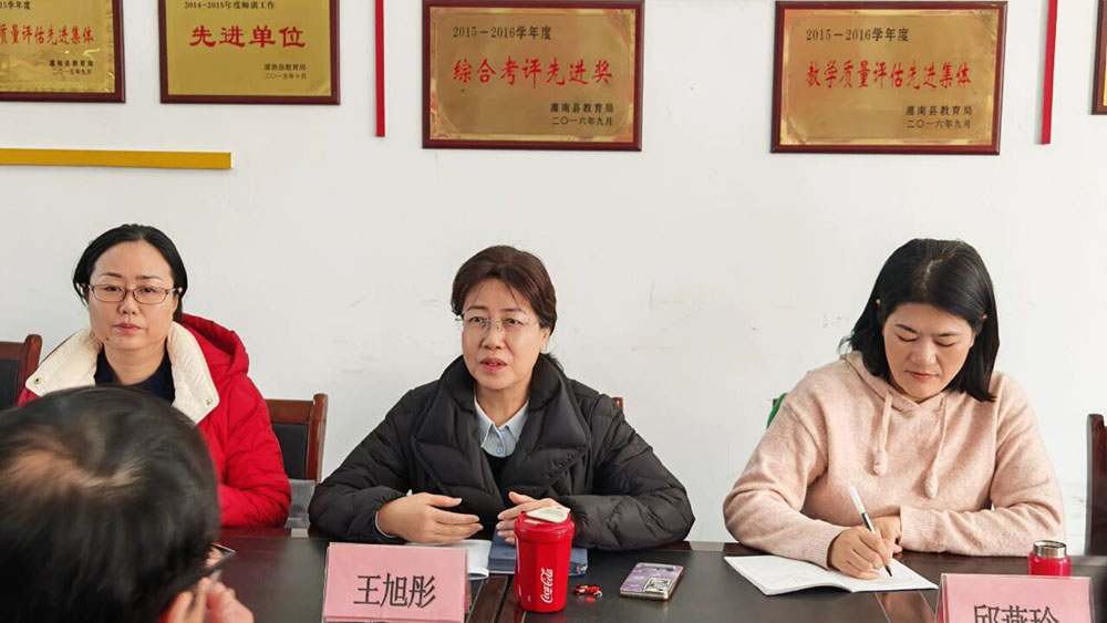 王旭彤书记结合近三年综合评估数据,指出灌南县新集中学总体呈进步态势,但也需重点关注学困生转化问题,提升课堂教学效率,强化学科目标意识。她深入分析当前教学中存在的学生基础薄弱、课堂效率有待提升、教师研讨机制不够健全等问题,并提出高质量因材施教的具体建议。殷雄书记高度认同王旭彤书记的分析与建议,并承诺将立即组织各校推广与落实,形成教育发展的良性循环,进一步推动“优学乡村”建设走深走实。