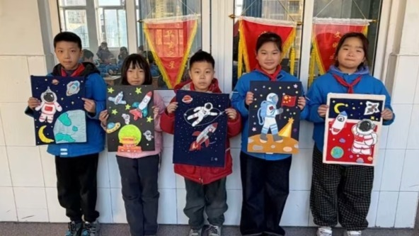 创作过程中,同学们充分发挥想象力与创造力,将手工创意融入绘画表达,在构思与实践中锻炼动手能力、激发创新思维。一幅幅作品既饱含童真童趣,又充满前沿科技感,生动展现了新时代少年对未来的无限遐想与家国情怀。