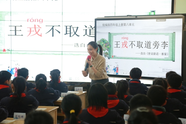 苏州工业园区第三实验小学谭畅老师执教古诗《墨梅》,通过精巧的教学设计,引导学生首次接触“托物言志”的表现手法,启发学生领悟诗歌不仅赞美梅花的高洁,更寄托着诗人的人生志向。师院三附小蒋事萍老师执教《忆江南》,以分层朗读、词句品析为抓手,引导学生感知词作的画面与意境,并结合创作背景解读深化情感共鸣,课堂在问答共读、拓展延伸中收尾,让学生在诵读与体悟中领略古典诗词的韵律之美。此外,南京市北京东路小学分校红太阳小学徐实老师执教的《守株待兔》、东海县西双湖小学佟冬冬老师执教的《登飞来峰》,均展现出独具特色的教学思路与实践路径。课后,南通市教育科学研究院小学语文教研员、江苏省特级教师、正高级教师王爱华,南京师范大学附属中学新城小学党总支书记、江苏省特级教师、正高级教师杨树亚两位专家进行专业点评。王爱华指出,一堂好课应当“有思想、有灵魂”,强调课堂教学要在知识传授的过程中,贯穿思维启迪与精神培育。