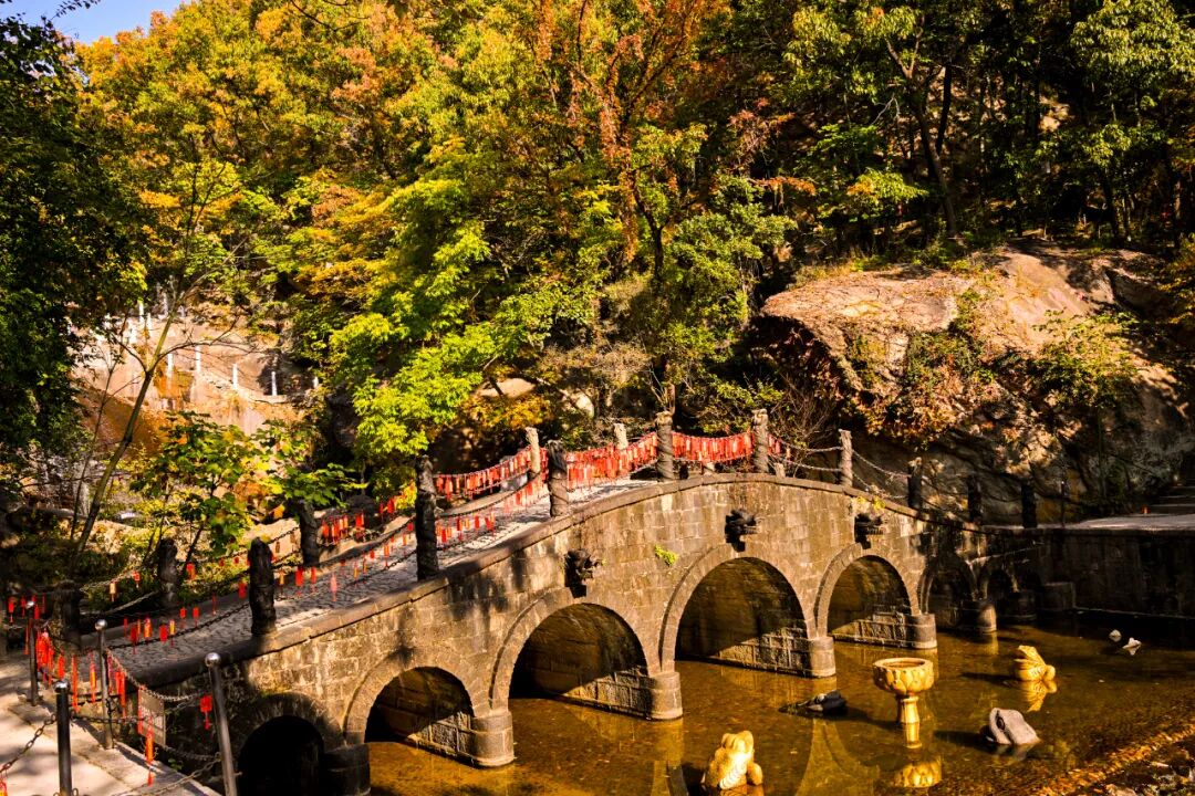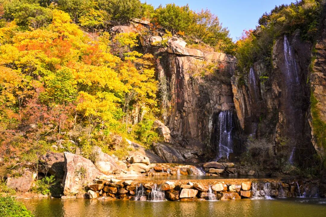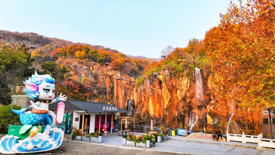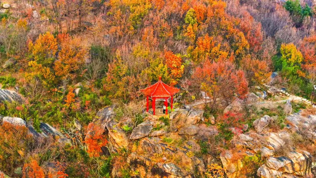 风过处,彩叶翻涌如浪,簌簌声响似秋的低语,与蜿蜒溪涧的潺潺水声交织,奏响连云港秋日治愈的交响。俯瞰而去,“江苏九寨沟”——渔湾景区的肌理在光影中流转,每一寸土地都浸着诗意与灵动。