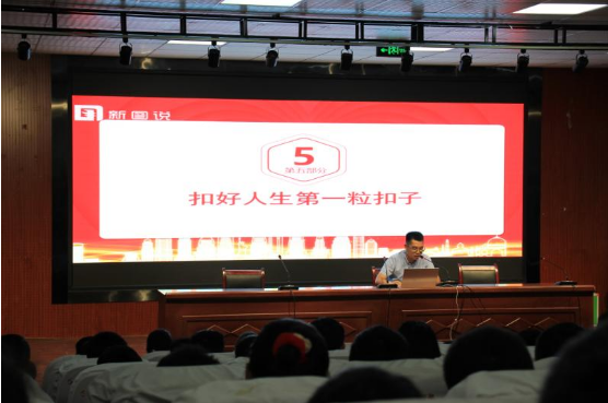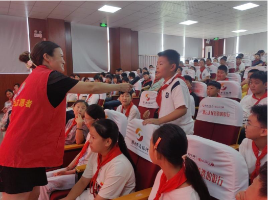 活动中,图河镇宣传委员、理论宣讲团成员许善帅以“奋进现代化 奋力挑大梁”为主题,一方面带领师生回顾了青年榜样习近平总书记的知青岁月,引导青少年向总书记学习,走好人生之路。另一方面,宣讲员生动讲述80年前那场艰苦卓绝的伟大斗争中,中华儿女同仇敌忾、浴血奋战的英雄事迹,强调抗战精神跨越时空的时代价值,并通过抗战时期的烽火岁月与新时代中国的辉煌成就的相互对比,从百废待兴到世界第二大经济体,从救亡图存到迈向民族复兴,进一步揭示坚持党的领导、传承伟大精神是实现国家富强、民族振兴的根本保证,点燃了全场师生的爱国热情与历史使命感。同时他还结合详实的数据和生动的案例,系统阐述了中国共产党四个历史时期的伟大成就,以及中国式现代化的宏伟蓝图与丰富内涵。从科技创新到绿色发展,从脱贫攻坚到乡村振兴,一幅波澜壮阔的现代化画卷在同学们眼前徐徐展开。他号召青少年要扣好人生第一粒扣子,要将个人理想融入国家发展大局,以聪明才智贡献国家,以开拓进取服务社会,真正成为能够“挑大梁”的新时代好少年。