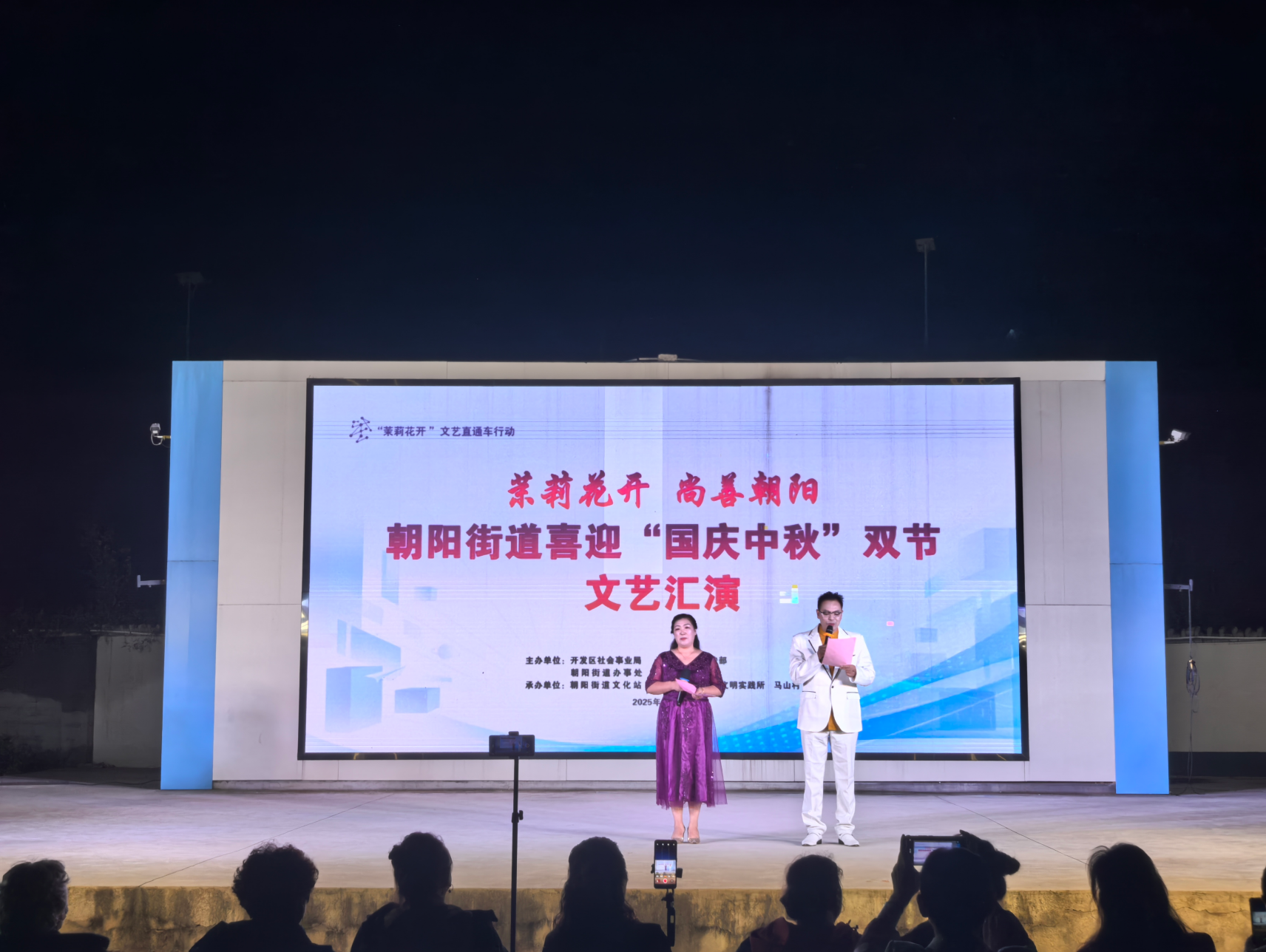 (刘云 张乾智)月满双节至,乡韵动朝阳。9月20日晚,市开发区朝阳街道“茉莉花开”文艺直通车暨“喜迎国庆 乐享中秋”文艺演出驶入朝阳街道马山村,以一场融合传统与现代、乡情与国韵的文化盛宴,让辖区居民在家门口尽享“文化福利”。