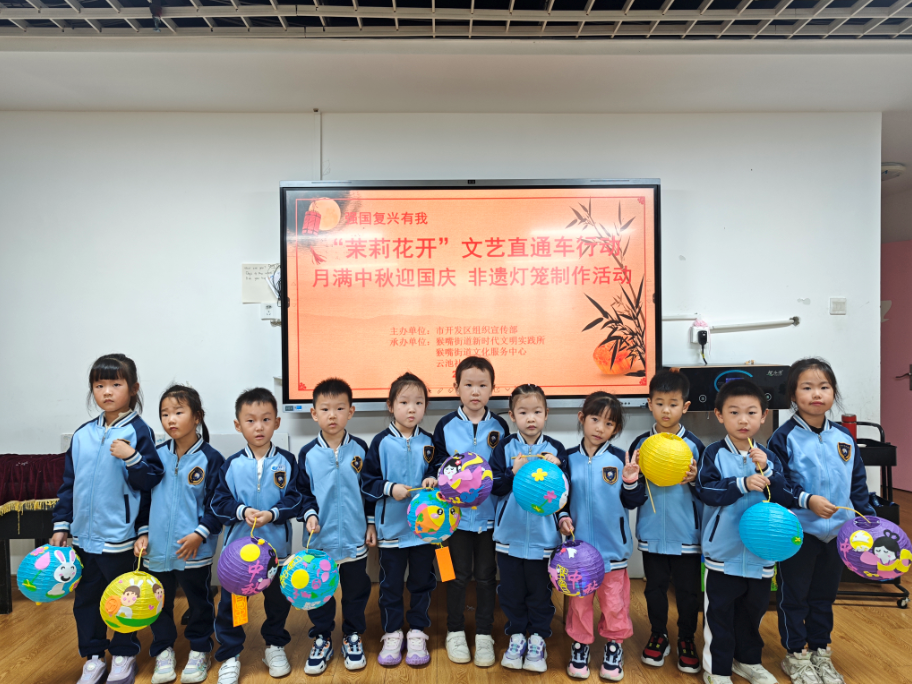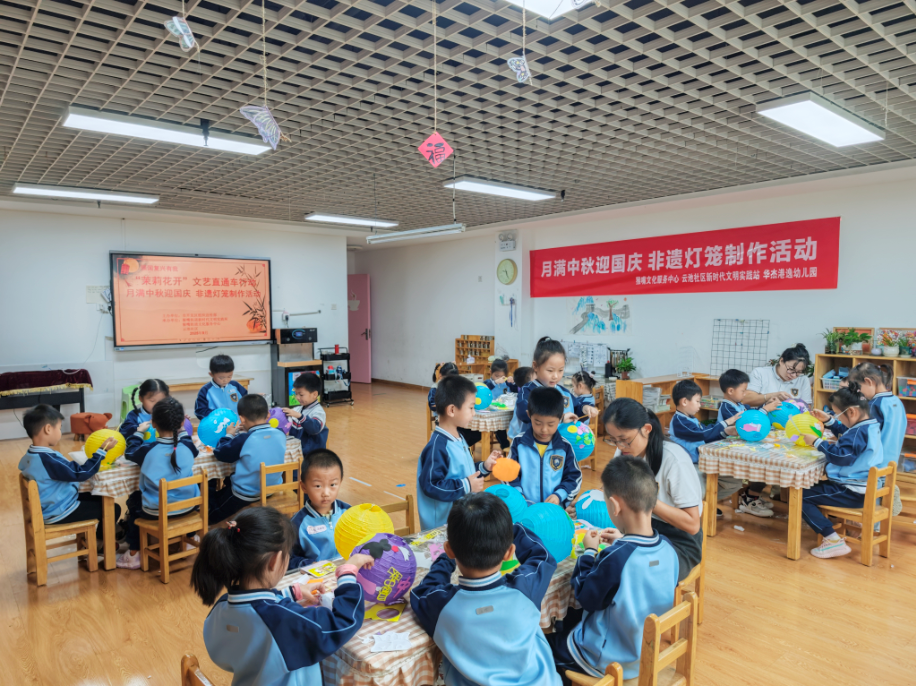 国庆中秋“双节”将至,为弘扬中华优秀传统文化,营造浓厚的节日氛围,近日,云池社区新时代文明实践站开展“茉莉花开”文艺直通车行动月满中秋迎国庆非遗灯笼制作活动。
